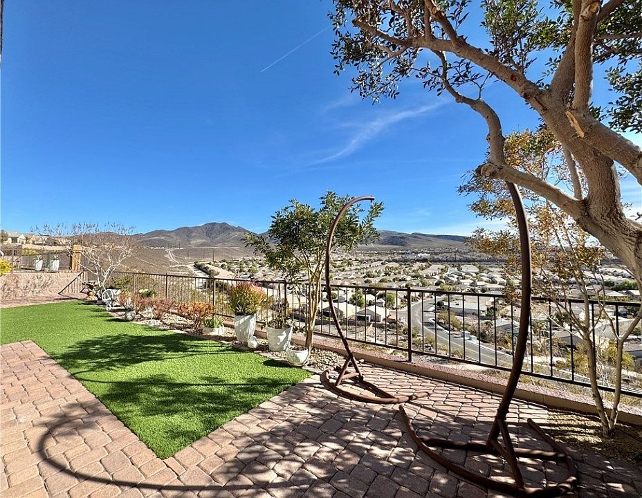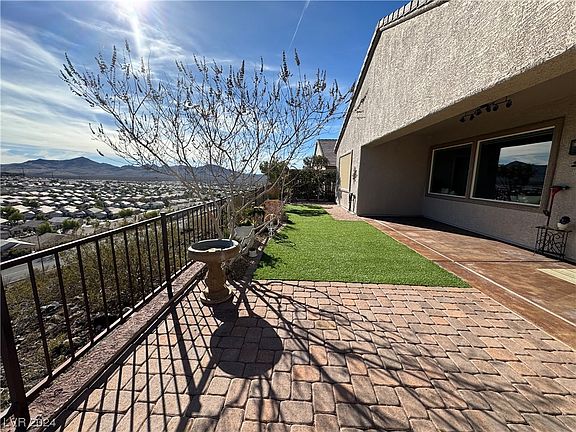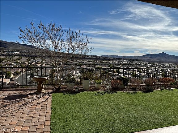 The minute you step through the door of this spacious 3 bedroom beauty you are greeted by the SPECTACULAR 180º PANORAMIC VIEWS of the Anthem Hills and the Sloan Canyon! No neighbors behind, perched elevated high above the neighborhood below. This open floorplan has upgrades throughout. Fully remodeled bathrooms including a large soaking tub in the main bath, and solar tubes stream in natural light. Primary bedroom is in the back of the home for peaceful sleep. Huge walk-in closet. Custom built-in office in front bedroom. The built-in window seat in living room has tons of storage and is a cozy spot to take in the views. Step outback to the view fenced yard with a side yard Zen garden. The covered patio is perfect for alfresco dining or to create an outdoor living space to take in the serenity of nature. The recreation center boasts a fitness center, pool, tennis, pickle ball, activities, and lots of opportunities to socialize. Enjoy all that the Solera 55+ Community has to offer.
