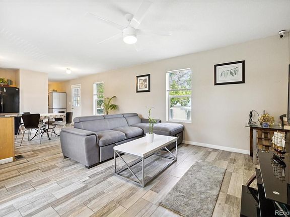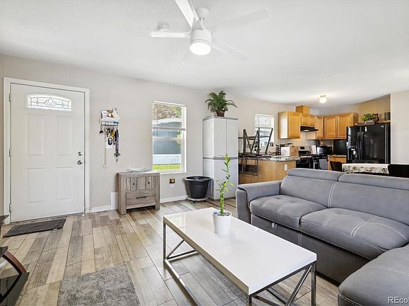 Gorgeous single wide home set in the quiet park of Kimberly Hills right in the heart of Federal Heights! This three bedroom, two bathroom home has a great sized living room with an upgraded ceiling fan and beautiful ceramic tile in both the living room and kitchen. The kitchen has extended counter space great for bar seating and entertaining guests! The primary bedroom has a large walk in closet and primary bathroom located inside of the bedroom! On the other side of the home, down the hall conveniently located is the laundry area next to the two perfect sized bedrooms and full bath which is upgraded with new lighting and a new vanity. The yard is the perfect size for gardening and grilling. External shed for additional storage. Close proximity to shopping and restaurants. Easy highway access and only 20 minutes from downtown Denver! Come see your HOME TO BE!