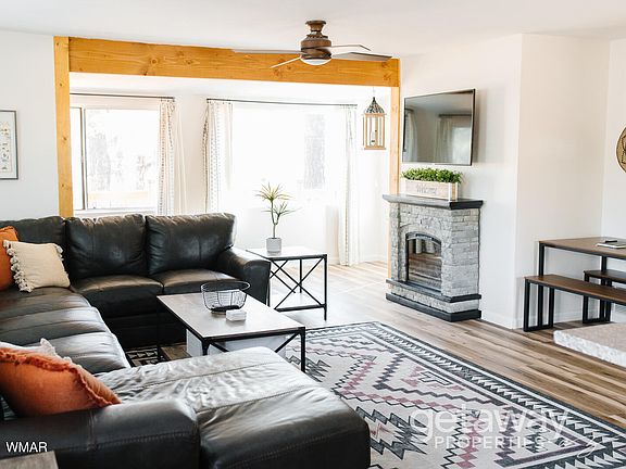 Come relax in the newly renovated ''Tree House Bungalow''. Aptly named for the feel it gives you as you take in the beautiful views and tranquility of the surrounding trees and sounds of nature while perched on a hill overlooking the tree tops. Listen to the whispering pines with your morning coffee on our spacious and private deck. After a day of golfing or paddle boarding at nearby Fools Hollow Lake, you can enjoy your favorite evening beverage at your fire pit. On the inside of this thoughtfully modern decorated home, you will find everything you need including mini bar. Electric fireplace warms up the home with a flip of a switch. There is 2 bedrooms and 2 bathrooms. There is a place to park an RV or trailer on the property as well. Furniture is negotiable except sofa.