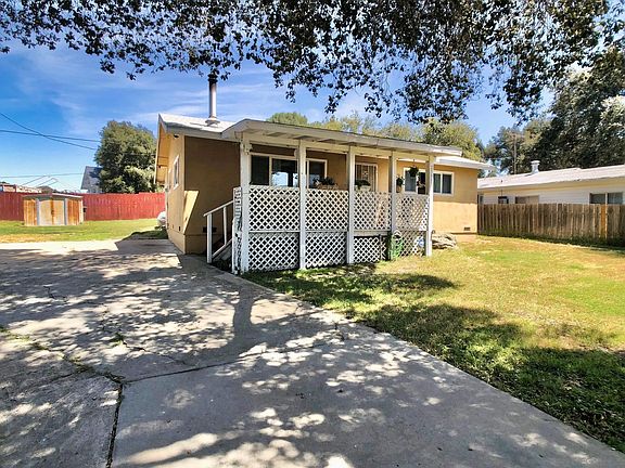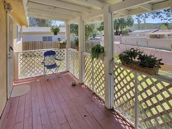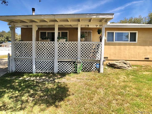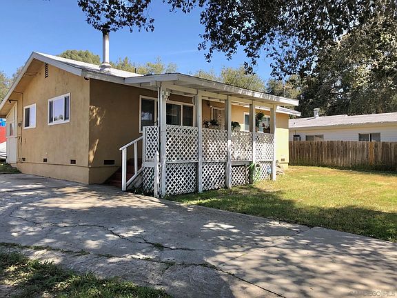 This fantastic single level home in the Lake Morena Village area of Campo, is just a short walk to the lake that features camping, fishing and swimming. Enjoy sitting on your front porch while overlooking your spacious and fenced in yard that is perfect for an RV or other toys, or to add a garage. Inside you will find white vinyl, dual pane windows, laminate wood flooring, and tiled flooring in the full bathroom and kitchen. The kitchen is open with white cabinetry and electric appliances. This home offers a wood burning, free standing pellet fireplace in the living room and central forced heating and cooling. The electric water heater was installed in 2016 and newer septic lines in 2013.