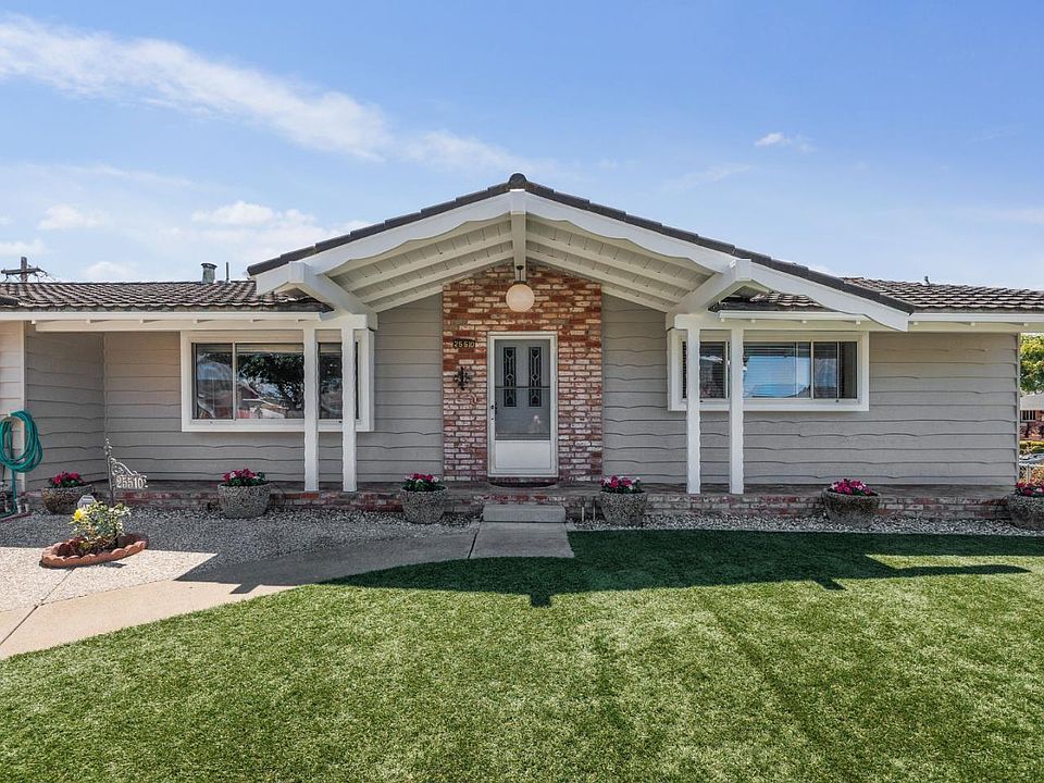Single level home nestled within the "Southgate" neighborhood. Welcoming freshly painted exterior, attractive wrap around turf lawn, and covered front porch. Hardwood floors flow throughout the spacious, light filled living room. Eat in kitchen with ample cabinetry, granite counter tops, and newer stainless-steel appliances with casual dining area opens to the family room featuring a focal point wood-burning fireplace. Set away from the main living spaces of the home are the three bedrooms, including a primary suite w/ensuite bathroom, & hall bathroom, creating restful retreats. Graceful living areas extend from the indoors out to a large, covered patio providing space for alfresco dining, entertaining or enjoying warm evenings. Centrally located near shopping conveniences, restaurants, local schools & highways 880 & 92. A short drive to Southland Mall, downtown Hayward & easy access via San Mateo Bridge to the Peninsula.