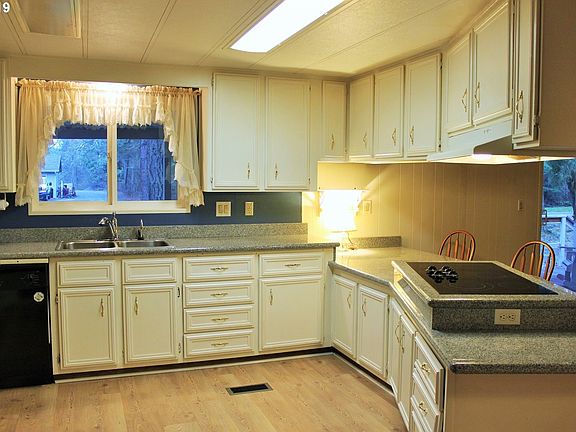 Charming & clean home on nearly 1 acre w/ multiple outbuildings! Beautiful kitchen w/ granite counter tops, full pantry & tons of cabinet space. Huge, open living room w/ lovely laminate floors. Spacious dining room w/ a built-in hutch & sliding door leading to the covered front porch. Master w/ private bath features soaking tub & dbl sinks. 2nd bedroom w/ additional private bathroom. Tons of room for gardening! Newer double-pane vinyl windows. All kitchen appliances are included.