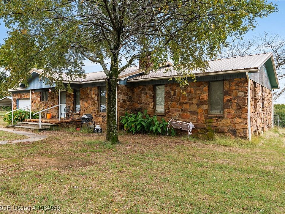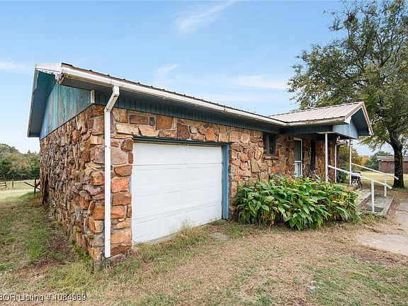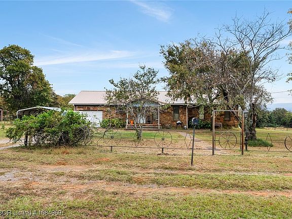 Home on the Range! Experience peaceful country living and timeless charm in this 2-bedroom, 2-bath rock home set on 15.15 scenic acres with a beautiful view of Cavanal Hill. The durable rock exterior and metal roof (just 4 years old) pair perfectly with the tranquil surroundings, while the inviting interior features a cozy wood-burning fireplace, an eat-in kitchen, and comfortable living spaces that make you feel right at home.