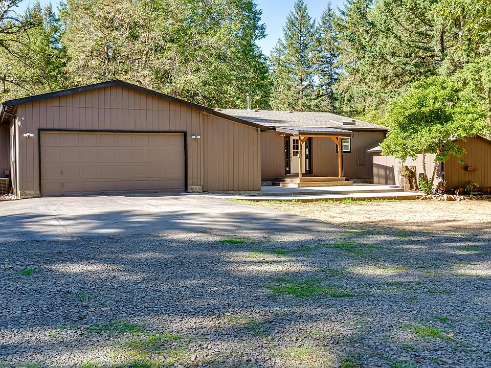 Large secluded manufactured home sitting on 2 level acres in private setting with seasonal creek, fruit trees. Home has an open floor plan, vaulted ceilings, updated vinyl flooring, and stainless appliances. Master suite features luxurious private bath w/soak tub & dual sink vanity. Huge front patio, large back deck with built in hot-tub, and lots of storage space. Loads of parking for an RV or other recreational vehicles. 2nd MFG is a 2bed/1ba home for guests!