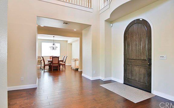 STUNNING HOME located in the Gated Community of Sycamore Creek!!! Home features 4,246 square feet with custom features including a gorgeous front door that opens in to the front foyer with vaulted ceilings and direct views into the lush green backyard. This home features 6" dark hardwood planked flooring, open floor plan, full bedroom and bathroom located downstairs perfect for guests or home office. Kitchen is open to the family room and features granite counter tops, walk in pantry, double ovens, water filtration system and stainless steel appliances. The family room is light and bright with lots of natural light, gas fireplace and surround sound. The Master Bedroom features an en-suite bathroom with separate his and hers vanities, custom built ins and larger master walk in closet. Home also includes a 3 car garage, Formal dining room, formal living room, & Bonus/game room. This home is located just below the beautiful foothills of the Cleveland National forest in the master planned community of Sycamore Creek. The community offers two beautiful swimming pools, splash pads, gym/workout room, hiking/biking trails, sports park, Tennis, basketball courts, sports park, great schools and so much more!