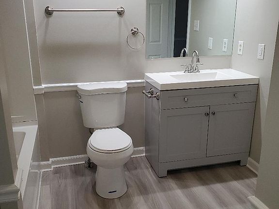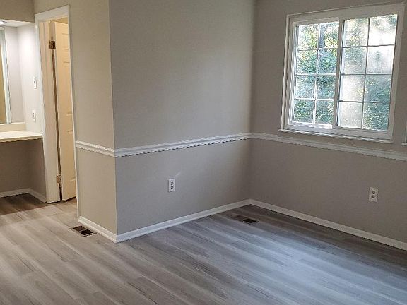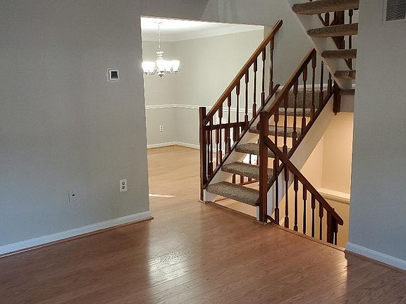 Beautiful townhouse that's been completely renovated! New SS appliances, new laminate floors, new carpet, new baths, freshly painted throughout, new HVAC! Walk-out rec room to big deck backing to woods! 2 reserved parking spaces and full-size washer & dryer, too! Great location close to shopping and restaurants! Renter responsible for electric and water/sewer. No smoking or dogs/cats, please.