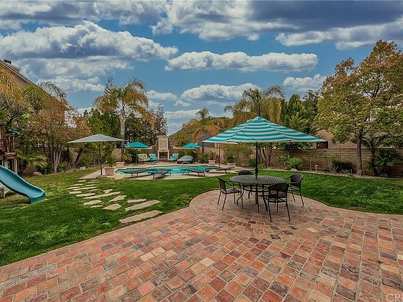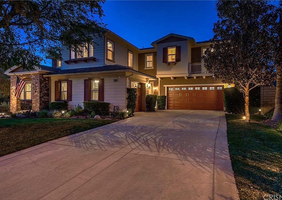 Check out this outstanding Southern Oaks Manor pool home! Interior upgrades include large Gourmet kitchen with stainless steel appliances, deep black granite sink, walk in pantry & built in stainless steel refrigerator. French pavestone and wood flooring downstairs. Bedroom & full bath downstairs. Plantation shutters and recessed lighting. Huge family room features a raised hearth fireplace with built in entertainment center, beautiful mantle & Petrified wood granite ledge. Four bedrooms upstairs, one features a kid perfect bunk bed style built in (must see). Huge Master retreat with hardwood floors, fireplace, private sitting retreat, balcony overlooking the backyard and massive walk-in closet. Master bath includes travertine flooring, dual raised vanities, backsplash, separate tub & shower. Dream back yard with an exterior home theater system, remote operated drop down 18 foot projector screen, large grass area, pavers, pool w/fountain features, extensive hardscape and lush landscaping, beautiful lighting and gorgeous outdoor fireplace. 3 car garage (separated) with epoxy floors, cabinetry, electric car charger ready circuit. FULLY Paid-off SOLAR & No Mello Roos. This exclusive community is surrounded by rolling hills & offers a beautiful pool/spa, clubhouse & tot park. With easy freeway access, close proximity to parks, walking/hiking trails, shopping, restaurants, entertainment and some of the best Santa Clarita schools you could ask for, this is truly a must see.