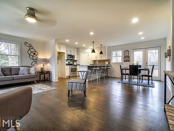 White Oak Hills charmer! This home was recently renovated/expanded and is move in ready! You'll love the wonderful open floor plan with large living area and beautiful kitchen with stainless steel appliances, gas cooking, stylish tiled back splash and stone counter tops, breakfast bar and pendant lighting. Dining area and french doors to expansive deck for entertaining. Master bedroom is on the main level and features ship lap wall, gorgeous master bathroom with walk in shower, double vanities and a walk-in closet. Upstairs boasts two large bedrooms with vaulted ceilings, lovely new bathroom and an office "nook". Rear deck overlooks huge back yard! New roof, new HVAC, new electrical, new windows, new kitchen, new bathrooms. Convenient location close to Downtown Decatur, Kirkwood and East Lake. Welcome Home!