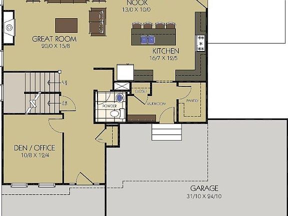 - Main Floor Laundry, Main Floor Bathroom, Formal Dining Room, Country Kitchen, Cath/Vault Ceilings, Finished Laundry Rm, Great Room, FP Living/Great Room, Den/Office, Barrier Free Access, Common Rec Room