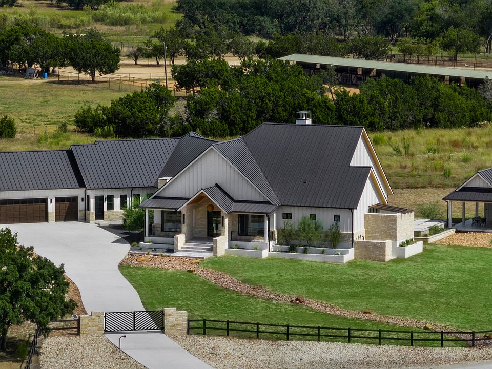 Deep in the heart of Texas on 12 acres of pristine Texas Hill Country, this custom-built estate in Dripping Springs exemplifies the pinnacle of luxury, privacy, and refined living. Spanning more than 5,000 square feet, the residence offers an exceptional design with impeccable attention to detail. At the heart of the estate is the stately main house, which features four spacious bedrooms, each with its own ensuite bath, providing an ideal blend of comfort and sophistication. The primary suite is a true retreat, seamlessly blending indoor luxury with outdoor tranquility, as it opens onto an expansive patio with views of the sparkling in-ground pool. The spa-like primary bath enhances the experience with a private outdoor shower, an elegant soaking tub, and a grand walk-in shower. The suite is completed by a meticulously designed closet with custom-built storage. For those who love to entertain, the estate offers a luxurious outdoor kitchen overlooking the pool, while inside, a wet bar complete with an ice maker and wine fridge invites guests to relax. The gourmet kitchen, a chef's dream, is equipped with a built-in wine fridge and a butler's pantry, which can be discreetly closed off, adding a touch of refined practicality to every culinary experience. An additional casita on the property serves as a private guest retreat, featuring a full kitchen, bedroom, and bathroom, ensuring the utmost comfort and privacy. Security and exclusivity are paramount, as the estate is accessed via a gated driveway, offering residents and guests a sense of seclusion and peace. This exceptional home is more than just a residence; it is a sanctuary that masterfully balances luxury and nature, making it one of the most distinguished properties in Dripping Springs, Texas.