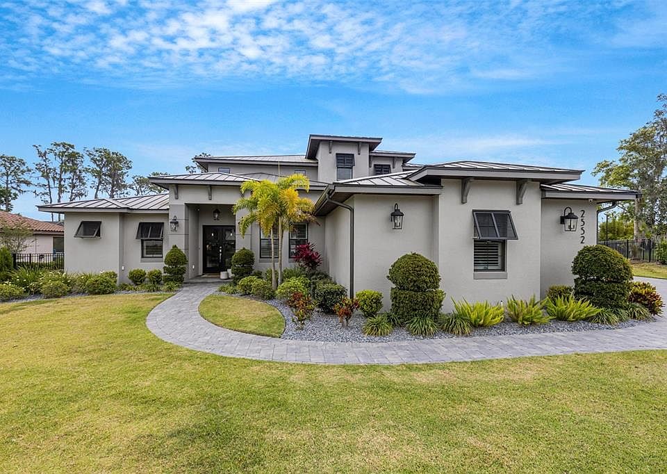 Custom Built Hulbert Home Located in the desired community of Delphi. Located on just over half an acre, this POOL home is a piece of paradise. As you enter you will be greeted with 20 feet ceilings laced with stained wood beams above. To the right is the dining room featuring a stone accent wall. The kitchen is a chef's dream. It has beautiful marble countertops, a Bosch double oven and induction stove top, a subzero fridge and freezer and a walk in pantry. The dishwasher and subzero have been paneled to seamlessly match the cabinets throughout the kitchen. The cabinets have been upgraded to reach the ceiling creating a luxurious look. Off to the primary suite, it has double walk in closets and French doors leading into the pool area. Walking into the primary bathroom, you will notice the marble flooring that has been extended throughout the room to the ceiling. Enjoy a spa-like experience with double sinks, a soaking tub, and walk-in shower. Two additional bedrooms, one full bath and one half bath are also located downstairs. Upstairs you will find additional 3 bedrooms and 2 baths. One bedroom is equipped with an ensuite bath. There is also a loft area and a unique hidden closet behind the bookshelf. The pool is heated and also has an attached spa. The large swim out area in the pool is perfect for lounging. The extended pavers on the lanai offer many opportunities for entertainment. The backyard is also where you will find the custom half basketball court. The 3 car garage is oversized and includes a mini AC unit. This allows for the perfect gym set up. Located in South Lakeland, this home is near shopping, schools, Polk Parkway, and more! Schedule to see this home today! You don't want to miss it!