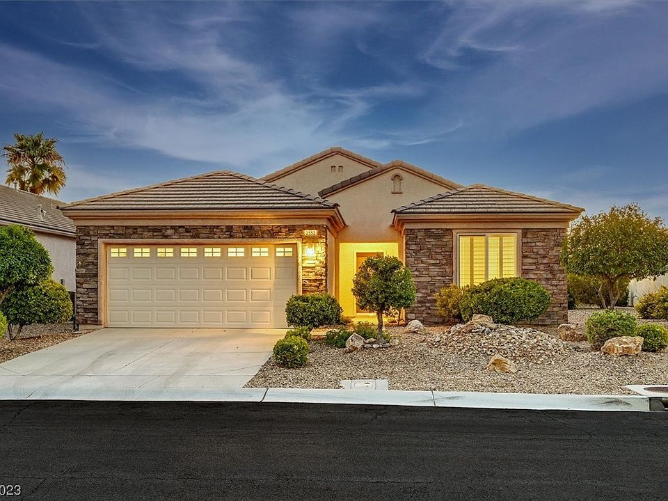 AN APPROX LIVING AREA OF 1,768 SQ. FT, 3 BEDS, 2 BATH, 2-CAR GARAGE, EXPANSIVE COVERED PATIO 25' X 8', PRIVATE BACKYARD, ELEGANT CURB APPEAL W/ FULL STONE FACADE, & NO DIRECT REAR NEIGHBORS. ADDITIONAL FEATURES INCLUDE: SPACIOUS KITCHEN W/ CORIAN COUNTERTOPS, CABINETS W/ PULL-OUT DRAWERS, PANTRY, UPGRADED LARGE FORMAT FLOOR TILE THROUGHOUT, NO CARPET, LIGHT INTERIOR PAINT, SHUTTERS THROUGHOUT, 9 FT CEILINGS, CEILING FANS, COMFORTABLE GREAT ROOM W/ PLENTY OF SPACE 24 'X 13', LARGE PRIMARY BEDROOM, PRIMARY BATH W/ WALK-IN SHOWER, & OVERSIZED PRIMARY BEDROOM WALK-IN CLOSET. ENJOY ALL THE BACKYARD HAS TO OFFER W/ APPROX 200 SQ. FT OF COVERED PATIO SPACE, MOUNTAIN VIEWS, & MATURE LANDSCAPING. RESIDENTS OF 55+ SOLERA AT ANTHEM HAVE EXCLUSIVE USE OF CLUBHOUSE, POOLS, SPA, FITNESS CENTER, PICKLEBALL COURTS, RECREATION ROOM & THE SOCIAL CALENDAR IS PACKED W/ MULTIPLE CLUBS.