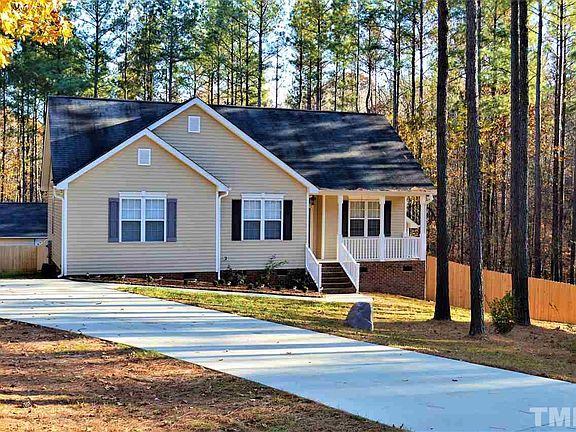 Lovely ranch home on beautiful wooded lot in quiet cul-de-sac. Conveniently located 20 minutes from Wake Forest. Large, fenced backyard with huge 24x16 storage building! Open concept kitchen, dining, and living room. Refrigerator, washing machine, and dryer are included. Spacious master bedroom with large, walk-in closet. USDA eligible and seller-paid warranty!