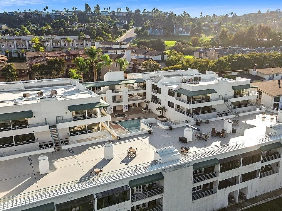 Welcome to resort-style living in the heart of La Costa! This beautifully updated single-level residence offers 1,783 sq. ft. of open-concept living, designed for comfort, convenience, and effortless entertaining. Enjoy elevator access from the secure entry directly into one of the most desirable floorplans in the community. Inside, natural light pours into the expansive living and dining area, complete with a cozy gas fireplace and direct access to one of three private balconies — perfect for morning coffee or evening sunsets. The modern kitchen features quality appliances, abundant cabinetry, and a dedicated laundry room just steps away. Two primary suites on opposite ends of the home provide ideal privacy, each with a generous en-suite bathroom, large closets, and a balcony retreat. Storage is never a concern with ample closets and additional private storage in the garage. This boutique community offers two assigned parking spaces in a gated garage and access to a massive rooftop deck overlooking the lush Omni La Costa Resort golf course — a standout feature with unforgettable views. Additional amenities include a sparkling community pool and spa. Perfectly located minutes from Carlsbad’s beaches, I-5 access, and the trendy Beacon La Costa shopping and dining center, plus nearby wellness offerings, cafés, and everyday conveniences. Whether you seek a quiet coastal retreat or a stunning place to entertain, this home delivers the best of La Costa living in a rare single-story layout. Welcome home!