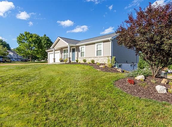 This is practically a New Home! Completely updated Ranch with 4 bedrooms, 2 Full Bathrooms, 2 Car Garage & Walk out basement! Located on a large corner lot with professional landscaping & fenced back yard! More than 1,700 sq ft of total living space! Beautiful stone front exterior greets you to this open floor plan! Cathedral ceilings w/recessed lighting & luxury vinyl tile flooring through living rm & kitchen! 42 custom cabinetry w/soft close drawers & doors, granite counter tops, stainless steel appliances, goose neck pull down faucet. Sliding door to the deck w/view of large yard & a few steps down to large patio great for entertaining! Fully finished walk-out basement has recessed lightning, 2nd full bath, huge family rm & 4th bedroom! Everything is New! Roof, Windows, Doors, light fixtures, fresh nuetral paint, carpeting, HVAC system, water heater, electric, plumbing, deck, patios & extended concrete driveway. Don't miss your chance to own a Turn Key move in ready home!