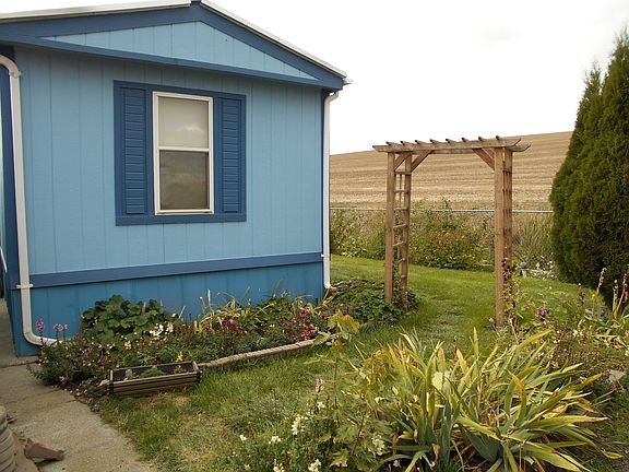 Better than renting! End lot with amazing views of the fields and wildlife. Secluded yard area with room for flowers and garden. Short drive into Pullman, easily accessible throughout winter. Master bedroom and master bathroom at one end with the other bedroom and bathroom at the other. ~Newer rage oven. ~Newer carpet and vinyl plank flooring. ~W/D Hookups. ~Dishwasher. ~Storage Shed Lot rent is $250 a month Buyer must pass a background check required by the management of the park.