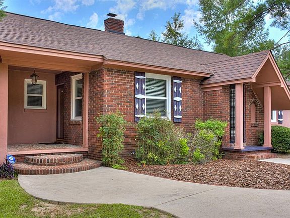 Very well maintained and unique 3 bedroom 2 bath brick and stucco ranch home located in Hillcrest Memorial neighborhood. This home features hardwood, ceramic tile & carpeted flooring, new roof, and new insulated double-pane windows. The kitchen features new stainless steel smooth top range, vent hood microwave and dishwasher. Kitchen also features beautiful cabinetry, stained glass ceiling fan and arched entryway. The dining room off of kitchen features floor to ceiling windows which provide an abundance of natural lighting. The great room features built-in bench seat with storage, a brick surround fireplace with white wood mantle & wood burning stove insert. The owner bedroom features a remodeled bathroom with tile flooring, tiled walk-in shower & separate tub. There are numerous covered porches, ground level deck & double carport with storage. This wonderfully unique home sits on a deep, wooded lot with storage building/workshop and covered pavilion.