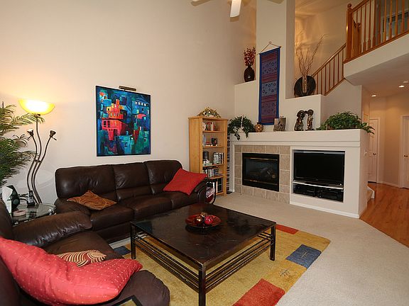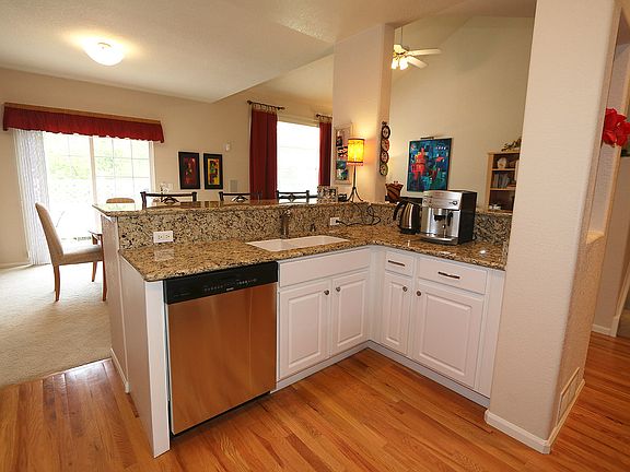This thoughtfully upgraded Danbury Park residence is the perfect place to call home! A covered front porch welcomes you into a bright, open-concept interior enhanced with hardwood flooring, fresh carpet and vaulted ceilings. Everyday luxury awaits in the beautifully remodeled kitchen that showcases granite countertops, a large pantry, peninsula with counter seating, and stainless steel appliances, including a new Samsung refrigerator installed in 2019. In the adjoining dining room, a sliding glass door opens up to the private patio, an ideal place to set up your grill and dine al fresco. Abundant sunlight fills the versatile living room that features a gas fireplace, built-in shelving and a surround sound system. Upstairs, enjoy the privacy and convenience of all three bedrooms on the same floor. The fabulous master suite encompasses an en suite ¾ bathroom and 2 walk-in closets. In-unit laundry, with new 2019 Samsung washer and dryer included, adds to the ease of living. Numerous updates, including a new HVAC and water heater installed in 2018, ensure this gem is completely move-in ready! The unfinished lower level offers ROI potential to add living space. Danbury Park is a gated, well-maintained community with lush landscaping, plentiful guest parking, a community clubhouse, and an amazing outdoor pool that you will relish while beating the heat all summer long. Enjoy this quiet location without sacrificing convenience - find retail, restaurants and recreational opportunities all within minutes of home! Commuting is a breeze with quick access to I-225 and the Iliff light rail station.