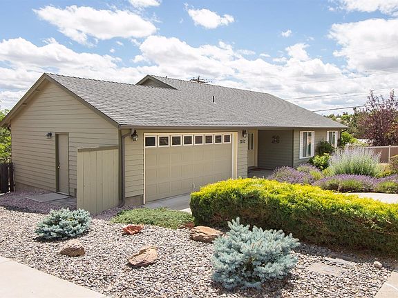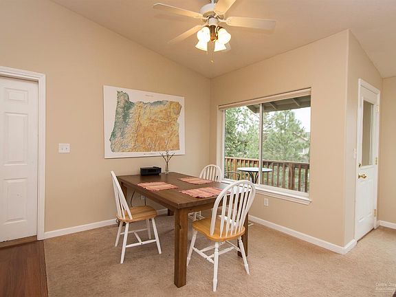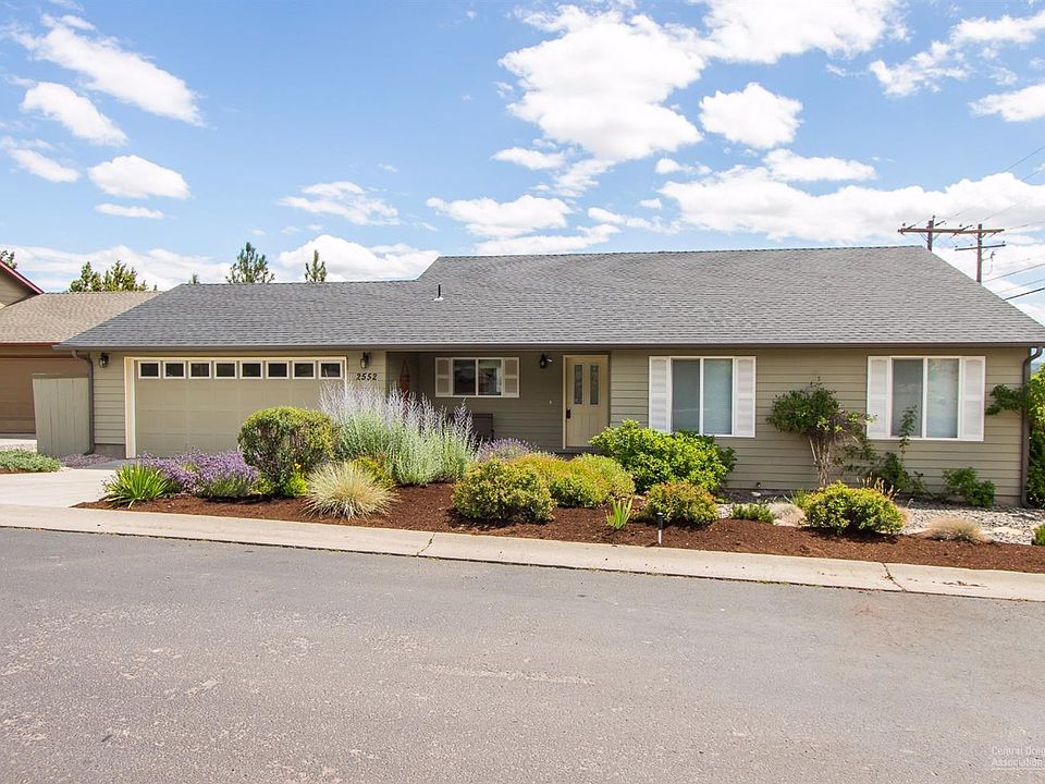 Livable ranch style home on quiet street in SW Redmond's Valleyview addition. Attractively landscaped corner lot with backyard view of city. Vaulted great room with corner gas fireplace, slate surround opens to rear deck and fenced back yard. Lots of kitchen cabinet space, breakfast bar. Convenient laundry room w/ base and wall cabinets, utility sink. Vaulted master bedroom w/ ceiling fan, master bath en suite. Front bedroom/office opens to great room through double doors. Covered front porch. Central AC.