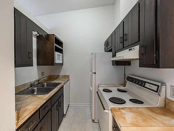 Full kitchen with dishwasher, disposal, microwave, range & refrigerator