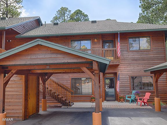 The Village Condominiums. Upper unit. Porcelain flooring, solid wood flooring, black power washed granite counters. knotty alder cabinetry. Living room hasstack stone fireplace, vaulted ceilings w/ Hand Hewn beams. Covered deck. Three bedroom, two bath. Baths have upgraded faucets and towel bars. Coveredcarport w/storage shed. Extra storage space in ceiling of covered carport. HOA covers all exterior, grounds and roof. Close to hiking, biking and NationalForest.
