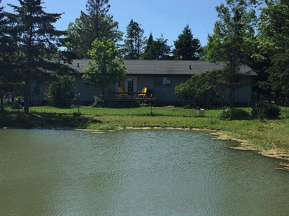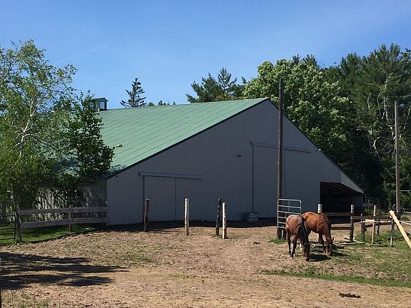 Outstanding opportunity to own your own working ranch on 47 beautiful acres! Perfect setting for the cattle or horse Rancher, this farm has a large horse facility with a 60'x100' indoor riding arena, 14 stalls, a wash station, heated tack room and more. There is an older barn (40x50) as well as a pole barn (46x32) for additional storage. Raise a herd of cattle or train or board horses here. All the work has been done for you! Unload your livestock and you're ready to go! Come in from the fields after a long day of haying to the spacious 4 bedroom, 2.5 bath ranch style home with a full basement and attached garage. Enjoy a summers day watching the ducks and geese from the large back deck overlooking your own private pond.