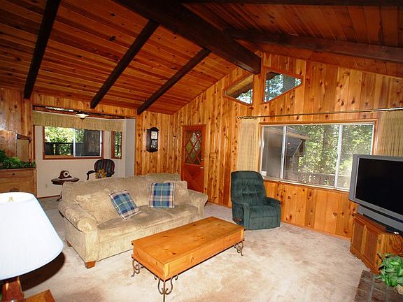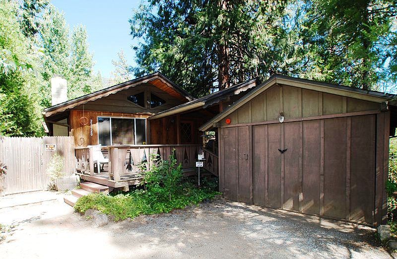 Level street to street Fern Valley setting a short walk to the Village. Main entry opens to Living Room offering vaulted ceilings, river rock Hearth, knotty pine paneling and bay window. Galley Kitchen and intimate Dining area. Large Media Room/Den includes wood stove and accesses sprawling deck. Ample Master Bedroom complimented by a wall of mirrored closets. Additional Guest Bedroom. Two baths. Sunny garden, fully fenced pet friendly backyard. Workshop plus detached Garage.