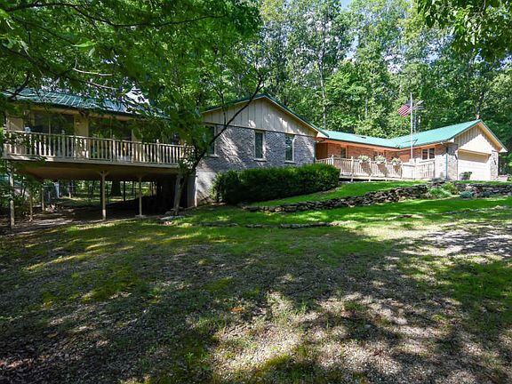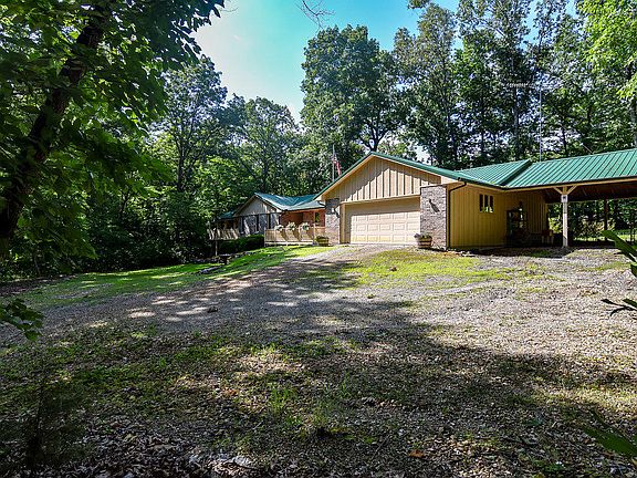 Beautifully wooded, quietly serene and only .5 mi from easy Table Rock Lake access, this 2600+ sq ft 3br, 2BA home has everything you need for comfortable, laid-back living. Low maintenance metal roof, brick & cedar exterior, oversized 2 car garage plus fantastic attached 3 car/boat carport. Comfortable living room w/woodburning, ducted, fireplace plus large open family room w/gas stove & amazing sun room that surrounds you with nature while relaxing in the comfort. Expansive back deck for great entertaining or outdoor living. Remolded kitchen with efficient layout, stainless appliances including double oven, 2 refrigerators, washer & dryer & large pantry. Lower level workshop and storage space. Surrounded by 5 wooded acres with nicely landscaped area around the home. A truly great find!