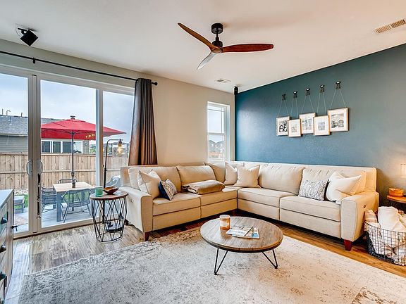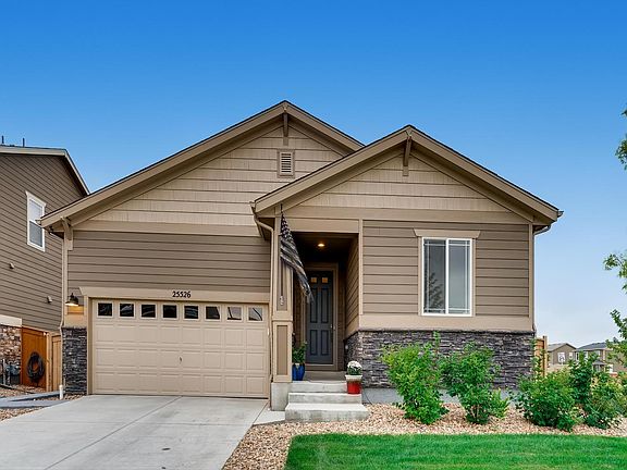 This incredible ranch-style home has custom upgrades you won't want to pass up. This home provides plenty of gathering space for friends and family. An expansive great room, a stunning kitchen with breakfast bar and an adjacent dining room provide ample seating and room to mingle. From the charming covered entry you'll step inside to 9' ceilings and an open layout offering a generous great room with large center-meet doors leading onto the relaxing patio where you can enjoy the fully landscaped yard. The jaw-dropping kitchen boasts wide planked thick wood floors and grey cabinets with center island adorned with granite countertops. Top of line appliances. You'll appreciate the recently laid concrete for backyard entertainment! Master suite features an immense walk-in closet and private bath with rich details. Two additional bedrooms utilize the full hall bath with granite countertops. A rent back option after closing is highly desired.