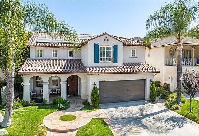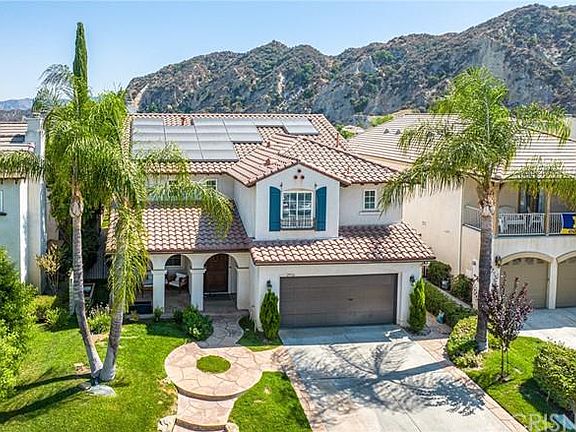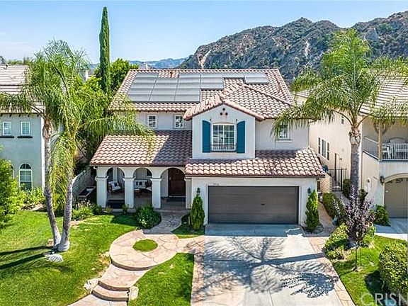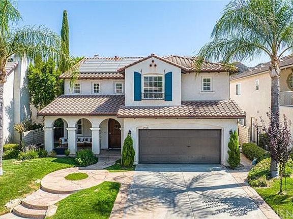 Truly sensational Stevenson Ranch Pool and view home ! Perfectly located on one of the few flat cul de sacs in the area this Centex home has all the architectural features these open floorplans are known for. From the front porch into the great room the improvements are noticeable right away. High end waterproof laminate floors throughout the property. Completely redone kitchen in all the current colors and finishes. Stainless appliance package including Subzero refrigerator/freezer, quartz and cesar stone counters with striking tile backsplash, induction oven, custom hood and second beverage refrigerator. The saltwater pool and spa are both done in pebble tech and feature nice spill over features and new heater, filters and pumps. With no rear neighbors the privacy and views are striking. Nice BBQ too for cook outs. Upstairs features 4 bedrooms, a huge loft, office/tech center with built ins and 3 full baths. 2 bedrooms share a bath, the primary and large secondary have private baths and the views from the deck of the primary suite are really special. All of this with low HOA, award winning schools and the gigantic Richard Rioux park just blocks away. Great home!