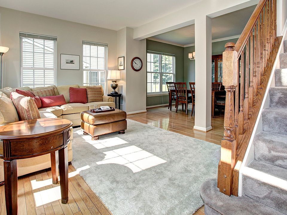TONS of light in this bright, spacious four bedroom, 3.5 bath South Riding colonial with GLEAMING hardwood floors. GORGEOUS kitchen with granite counters, stainless appliances and convenient center island that opens to INVITING family room with fireplace. Lovely screened porch backs to wooded area.