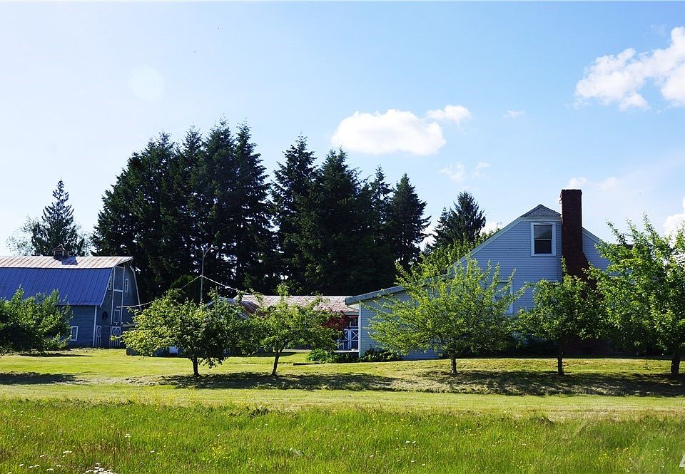 See VIDEO Tour! Updated 4+br/1.75 bath farmhouse w/charm, scenic 8.65 acres just north Arlington. Tons of potential w/ 5,950 sq-ft outbuildings: Dutch barn, cottage/garage, 3 stall auto shop/office/workshop+ 2 car gar. Home features tall ceilings, Swedish finish fir & new laminate floors. Rec room & full sized family room; rebuilt 1989. 6+ covered garage spaces. Great opportunity for a home farm, equestrian pastures, event site, nursery or auto restorations on this former dairy farm. Must see!