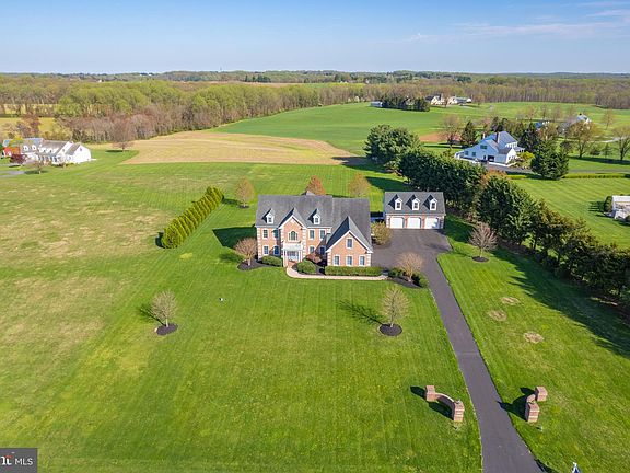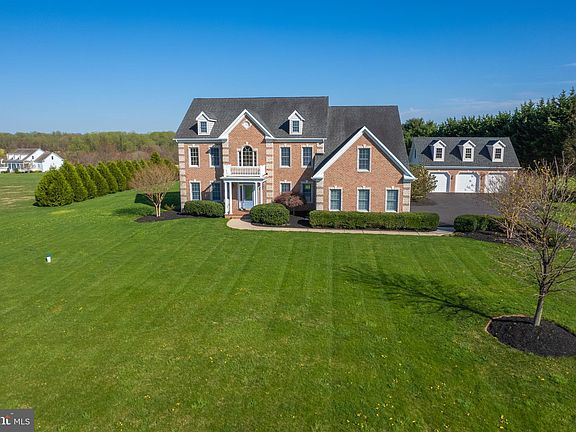 Welcome to serenity and grandeur! This stunning custom-built brick-front home is loaded with beautiful details. The main floor boasts 10-foot ceilings, hardwood floors, crown moldings, tray ceilings, chair railing, wainscoting, decorative columns, dual staircases and 2 half baths. Also on the main floor are the formal living and dining rooms, and a study that could easily be converted to 5th bedroom. The gourmet kitchen is furnished with 42-inch solid wood cabinets, stainless steel appliances, granite countertops, an island with gas cooktop. The sunlit family room has 20-foot ceilings, a ceiling fan and a gas fireplace and brick hearth, perfect for those cold days. The fully equipped laundry room is located between the garage and kitchen. The top floor features 9-foot ceilings, 4 spacious bedrooms with ceiling fans, lighted closets and 3 full baths. Escape to the primary bedroom suite that showcases a study or exercise room, a huge walk-in closet, a spacious ceramic bathroom with dual vanities and a jetted tub. The fully unfinished walk-out basement with full rough-in bath awaits your finishing touches. The home also has substantial parking with a 3-car side load attached garage as well as a 3-car detached garage with endless possibilities for an office, in-law, nanny, live-in help or rental suite. The home is situated on a quiet 2+ acre lot that backs up to farmland. There are plenty of entertaining spaces on the new concrete patio and ample room for a future pool, sport-court and garden. The home is served by 400-amp service, window candles, surround sound speaker system, sprinkler system, propane gas, private well and septic. Easy access to great schools, Loch Raven Reservoir & Gunpowder Falls State Park for lake activities and miles of walking/running/biking paths, Fallston Rec Complex for kids sporting events & Boordy Vineyards for weekend fun. Convenient location to downtown Baltimore, DC, Delaware & Philadelphia, in close proximity to Aberdeen Proving Grounds, BWI, NSA, NASA, MARC rail and major transportation routes.