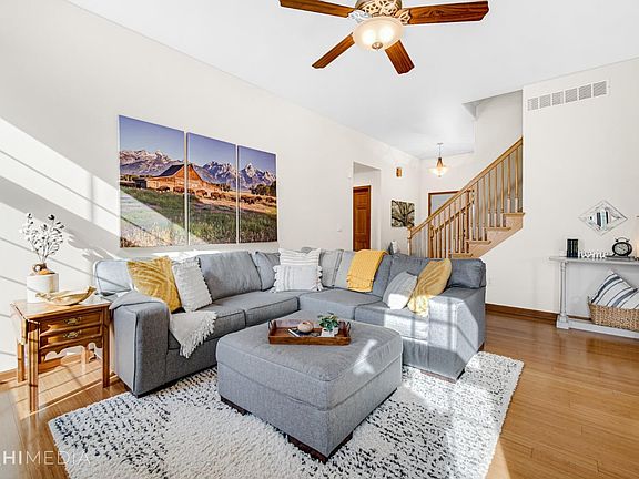 Beautiful 4 bedroom open floor plan home nestled on a cul-de-sac lot in the Windsor Park subdivision, located within an award-winning school district and nearby bike trails and downtown. Upon entering, you are greeted with the formal dining room, spacious living room with gas fireplace with bamboo floors, open to the eat-in kitchen with breakfast bar, granite countertops, and slider to the back deck and patio. The first floor also features the primary bedroom with a tray ceiling, walk-in closet, double vanity and jetted tub; laundry room and half bath. Three nicely sized bedrooms and full bathroom are located on the upper level. The large partially finished basement is perfect for additional entertainment space, playroom, and den or workout room, and great storage. Mature trees offer backyard privacy, and the well-landscaped lot provides blooms for each season. Smart thermostat, smoke detectors, and cameras included. Don't miss this beautiful home, schedule your showing today!