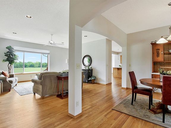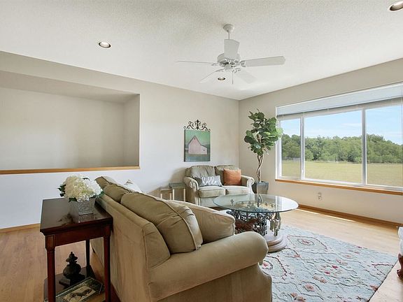 Must see! IMMACULATE home located on 5 acres in Sunnydale Farms, with rural water, all paved roads, just minutes from the conveniences of the city. This 3 bedroom, (with the potential of 4th bedroom on main level), 3 bathrooms, 3 car garage home has lots of windows to enjoy all the beautiful country views. It features wood floors, granite countertops and a large open kitchen with plenty of dining spaces. You will be sure to enjoy this wonderful open floor plan! The finished, view-out basement is a great space for entertaining. It features a cozy fireplace, wet bar, 3rd bedroom with large walk in closet, 3rd bathroom, large storage room, including a safe/storm shelter. The home has a gorgeous curb appeal with stone exterior. The back deck is covered and a great place to enjoy the breathtaking views. It's located in the desirable Valley Center school district. No specials/H0A. 2 Horses allowed. Updates include, newer gutters/roof, newer HVAC and recently redone lagoon. Schedule a tour and be AMAZED at the pride in the home ownership of this gorgeous home!