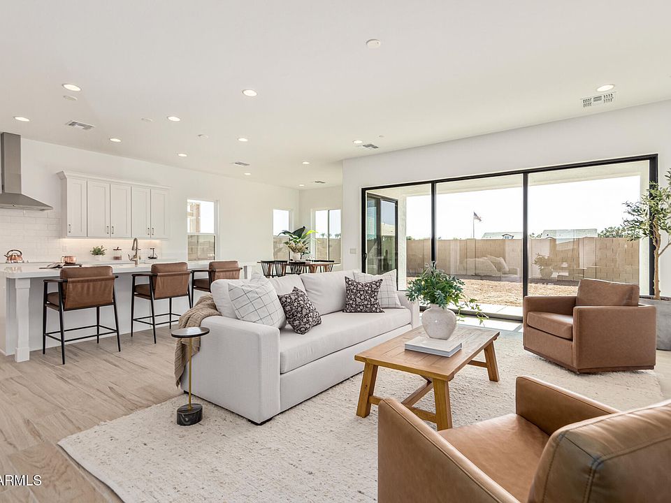Just completed quick close! Urban Farmhouse all white with dark brick on the outside! Chefs kitchen plus a second prep kitchen?! Lined with white cabinets, Gourgues white quartz and wood look flooring throughout! Top quality designer finishes and upgrades throughout. Huge wall of Glass at the great room, 8ft tall garage door, paver driveway, soft water look plus the Butler's Pantry is awesome! Open great room concept with a huge kitchen island perfect for entertainment. Surrounded by all all-single level homes on a 9100 sq ft lot. We have nice big side yards plus backyard space! Move in completed home! Gated community, pickleball, playground in a great location within 10 minutes of Tempe and 15 minutes from Scottsdale!