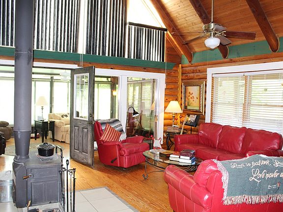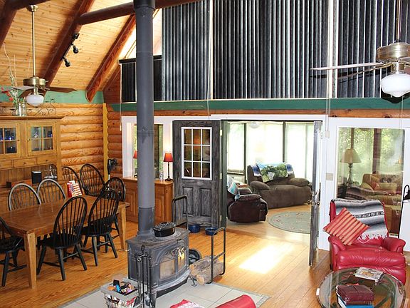 Serene living at its best' this 3 bedroom 2 bathroom log home on 1.71 acres has over 2,500 square feet, open kitchen/living room area' sunroom, free standing wood burning stove, office area, hardwood/tile walk-in closets and open beam cathedral ceilings; ALL kitchen appliances stay; Garden area located on dead end road.