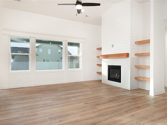 This home features one of the builder’s most sought-after floor plans with a spacious main level plus a fully finished bonus room. This 3 bed, 2 bath includes hard-surface countertops throughout, tile in the primary suite, a large kitchen island with gas stove, vaulted ceilings, transom windows, and a rocked fireplace for a high-end, custom feel. Upgraded finishes carry through every room. The 3 car garage offers additional space in the third bay perfect for storing toys or equipment. Outside, enjoy a big covered patio overlooking natural space and a small creek with no rear neighbors. Landscaping and fencing are included. Located in Bitterroot Heights, you get that peaceful ‘out of town’ feel while still being only five minutes from everyday amenities. This new construction home will be ready for its new owners in November. Other lots and floor plans available. These interior pictures are of a similar home with comparable finishes.