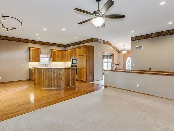 View of the water, Maize Schools, easy highway access, close to good shopping and restaurants and Sedgwick County Park. Open kitchen plan, large deck surrounded by lots of shade trees. Need a man cave, carpentry shop, quilt shop or craft room, we've got that! Shop in the basement has a walk out door to back yard, finished concrete floor, lots of outlets, cabinets, sink, great work table on wheels, got to see this one! Private backyard, no houses behind it! Extra large covered deck very private, fenced yard. Great main floor laundry.