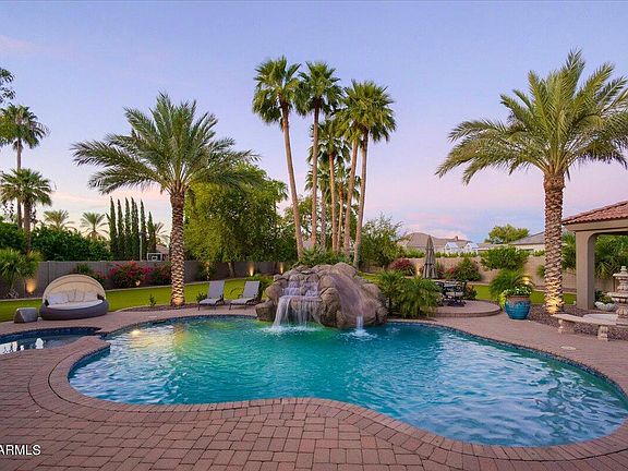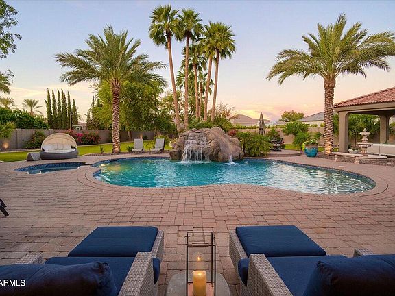 An amazing luxury estate located in Vista Estancia. A quiet neighborhood with 20 estate sized lots nestled within NE Mesa's citrus corridor. Offering approximately 5,000 square feet of casual elegance, 5 bedrooms en-suite, a bonus/media room plus an office. This home is a great option for Multi Gen living & or hosting guests. The amazing resort like backyard is expansive and offers a huge, covered patio, large pool, spa, ramada with fireplace plus gorgeous palm trees, and a sustainable, no water lawn, the size of a park! The owners have made many improvements to the home. Please review the supplement for detail. Vista Estancia is perfectly located! 20 minutes to ASU, Sky Harbor, Old Town Scottsdale. Removal of grass front and rear and added