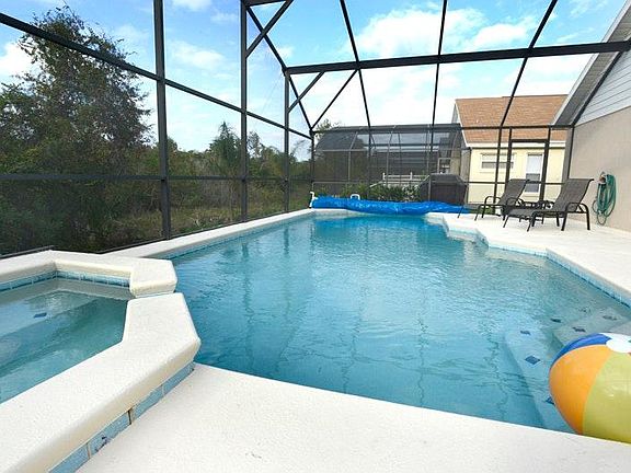 Nestled in the beautiful Indian Creek subdivision, this luxurious estate is just five short minutes from Disney in Kissimmee, where you'll find every shop, restaurant, and amenity you can dream of to complete your Disney vacation. This beautiful four-bedroom, three-bathroom (2 master suites both with pool bath facility) fully furnished pool and spa home has everything you expect in a luxury vacation rental including a carpeted games room in the garage and is location on a premium conservation lot. Its decor gives you a home-away-from-home experience, while the open floor plan and cathedral ceilings lend a spacious feel. The community offers tennis, pitch and put and playgroung and recreation area and NO HOA.