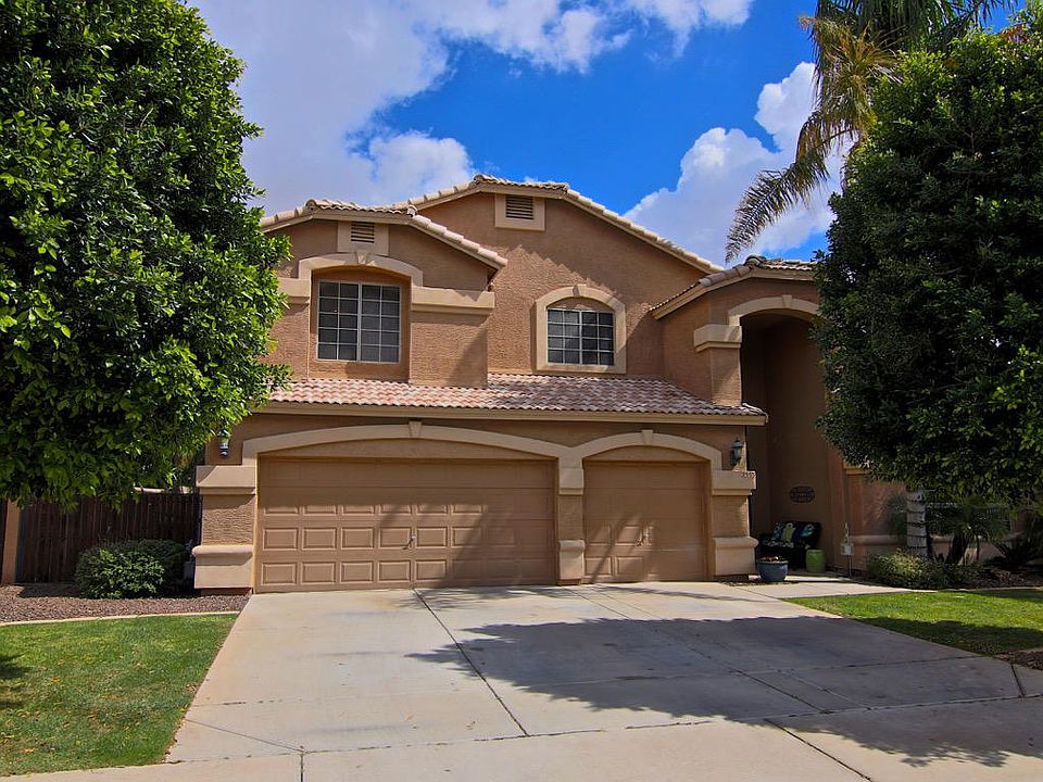 STUNNING HOME INSIDE & OUT! So Many UPGRADES You would think it is CUSTOM! Warm Welcoming Feeling right as you walk through the front door! GORGEOUS HARDWOOD FLOORS throughout the entire downstairs! Built in Cabinets everywhere! Bright Open Kitchen with extra large island, granite countertops, stainless appliances. Spacious MASTER BEDROOM DOWNSTAIRS with Completely Remodeled MSTR BATH including jetted, heated tub, CUSTOM, ORGANIZED WALK IN CLOSET! 4 additional bedrooms upstairs! AMAZING BACKYARD OASIS with nothing cheap added here! Sparkling pool, Custom Built Fireplace and Beautiful Fountain! This is what ARIZONA OUTDOOR LIVING SHOULD BE LIKE!!! So many upgrades to list. Check out all the photos and watch the video to capture EVERYTHING this FABULOUS HOME has to Offer! A MUST SEE!