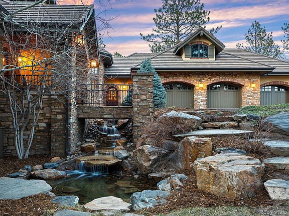 Mountain modern speaks beautifully to traditional elegance in this 3-story, 5 bed | 6 bath home tucked into a private, forested lot and located in the coveted Escavera neighborhood. This incredible custom home sits on secluded land with an impressive, multi-tiered water feature greeting you upon entry and a dual level back yard with separate patio and deck spaces, perfect for entertaining. With gorgeous woodwork and millwork throughout, hand scraped walnut floors, 4 gas fireplaces, multiple outdoor entertaining spots, and a myriad of warm, open interior spaces including the sunlight drenched great room and adjacent open concept family room and kitchen which features access to the covered deck with built-in grill, this home simply must be seen to be truly appreciated. The huge chef’s kitchen includes Dacor, Wolf and Sub-Zero appliances, a large eat-in bar, walk-in pantry, and custom elements throughout. Every detail of this home has been carefully crafted including the impressive main floor owner's suite with spa-inspired bathroom featuring dual vanities and large, organized owner's closet. Rounding out the main floor are a dining room, butler’s pantry, two powder rooms, large laundry room, and 3-car oversized garage with epoxy seal and built-in storage. The upper level includes a sizable loft space and 3 bedrooms - one with an updated en suite bathroom and the other an updated Jack and Jill. The lower walkout level offers access to the large back yard as well as every additional room you could want including both media and recreation areas, a wet bar with Sub-Zero wine fridge and beverage drawers, guest bedroom, bathroom, two bonus rooms. With an abundance of storage, this home offers room for all and a family-friendly lifestyle whether it’s movie night, a round of pool in the game room, or dinner under the stars anywhere on the expansive outdoor living space. Combining extraordinary craftsmanship with true comfort, this home is an absolute must-see!