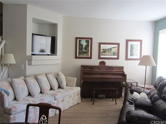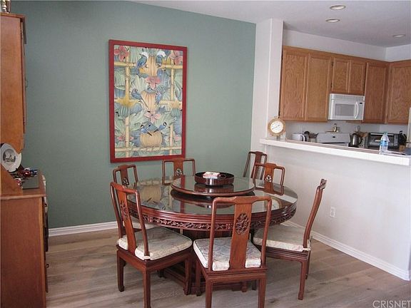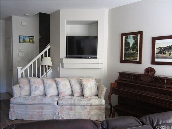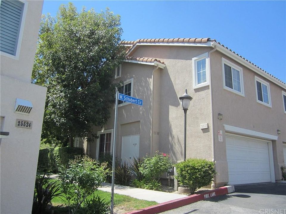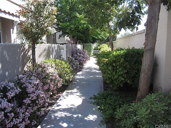 Here's your chance to own a Stevenson Ranch townhome in the Palisades community, which is close to shopping, restaurants and has easy freeway access. This three bedroom, two and a half bath unit features wood floors in the living room, dining area and 1/2 bath, recessed lighting, newer paint and a lovely tile fireplace in the living room for those "cooler" California nights. The kitchen boasts tile floors, a breakfast bar and a pantry and there's a stackable washer and dryer included in the laundry area. Upstairs offers a spacious master suite, with a full bath and walk-in closet and there are two more bedrooms and a full bath. The unit also has an attached two car garage and a front patio. There's a children's play area right down the street and the community has three pools.