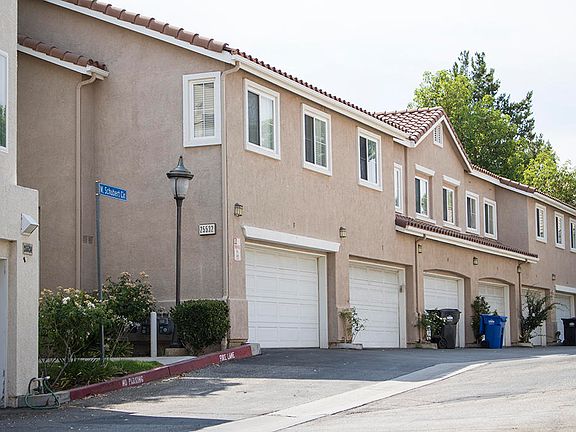 OPEN HOUSE SATURDAY 11-2PM Welcome home to your ideal 3 bedroom, 2.5 bath townhouse in the desirable Stevenson Ranch community. This one is sure to go quickly! Featuring beautiful laminate hardwood flooring throughout the downstairs, and lush carpeting in the bedrooms upstairs. The kitchen opens to the family room, offering a great space for family gatherings or get together's with friends. The master bedroom has a walk in closet and the other two bedrooms are spacious and have great morning light! Plus! There is a patio on the front of the house that is the perfect size for a small table and chairs and BBQ. The townhouse is on the perimeter of the complex, and located next to one the playgrounds found within the Palisades community. **Washer, dryer, and refrigerator all included**