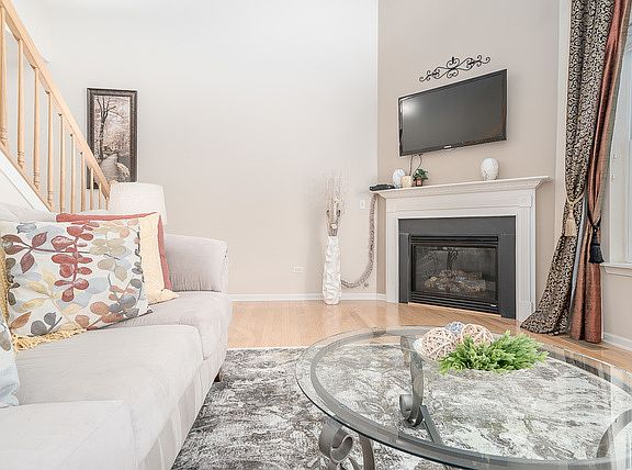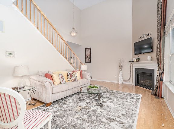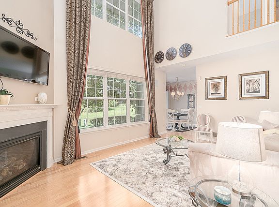 Impressive, luxury townhome welcoming foyer and spacious two-story family room with plenty of natural sunlight and cozy fireplace. Kitchen has an abundance of custom maple cabinets, pantry, and classy solid surface counters. Well maintained hardwood floors and updated light fixtures. Fabulous open floor plan and tall ceilings are greatly sought after. Large master bedroom retreat with vaulted ceilings, plentiful windows, wic, and luxury bath offering duel sinks, separate shower and soaker tub. Convenient 2nd floor laundry with folding table, extra cabinets for storage and utility sink. Full basement for storage and extra living space featuring 9 ft ceilings and bathroom rough in. Tastefully decorated and well maintained, turn-key ready, former builder's model with pond view