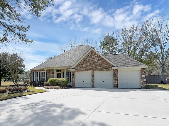 Beautiful custom 3-bedroom, 2-bath home with a 3-car garage on a half-acre lot in Spring! All bedrooms are located downstairs, game room is upstairs. This well-designed floor plan offers two expansive living areas, formal dining, & breakfast room—perfect for entertaining! Enjoy peaceful waterfront views of neighboring pond from your front porch or sit back & relax on one of two covered patios! Inside, you’ll find real hardwood floors, tile in wet areas, & carpet in the bedrooms. Spacious primary suite includes double sinks, jacuzzi tub, shower, walk-in closet, & built-in cabinetry. Numerous updates! New upstairs 2-ton HVAC (2025), downstairs 5-ton HVAC (2022), and a new roof (2023). Updated stone gas fireplace, light fixtures, & renovated bathrooms add stylish touches. The 3rd garage is climate-controlled with AC & heat. Refrigerators are included! Sprinkler system, gas connections for appliances, wired security system, & floored attic. No HOA fees, located just 1.5 miles from I-45!