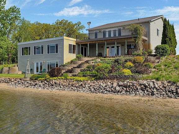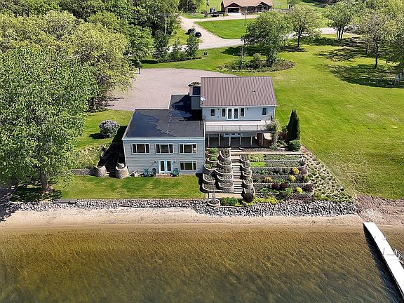 It is unbelievably rare for a lake property like this to come available anywhere in MN. This one-of-a-kind lakefront oasis boasts the best swimming beach you will find with 277' of sandy shoreline on nearly 2 1/2 acres of exemplary property. Included is a 30x40 shed with concrete floor, for ample storage to house the recreational water vehicles, toys, and more. This 5,000 SF retreat features 6 bedrooms, 3 bathrooms and living/rec spaces on each level, with a 2nd kitchenette area on the upper and bar on the lower and is the perfect location for large family gatherings and an ideal VRBO or rental for groups or corporate events. All 3 levels walkout to the stunning vistas. and over 5,000 finished square feet. Superb clarity and fantastic fishing. Own a piece of history, as this showcase is the original site of locally, well-known Horseshoe Ballroom and in 2006 was magnificently renovated to this extraordinary waterfront dream. Truly a rare beauty in the Land of 10,000 Lakes.