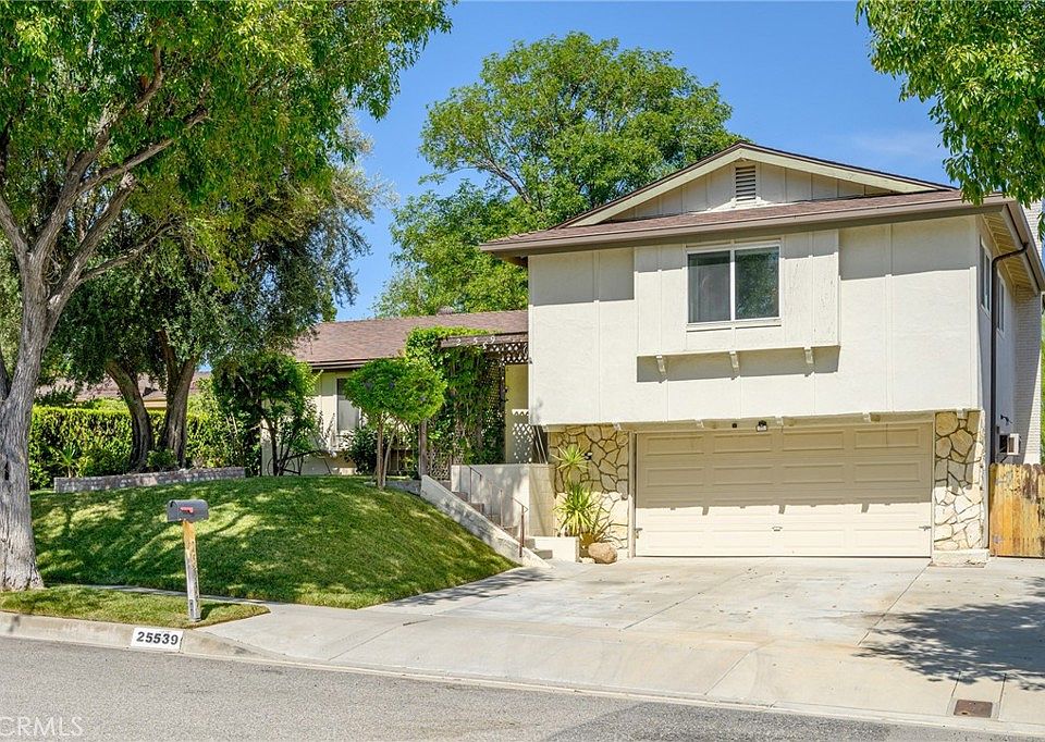 4 bed + 2.5 bath Serena Park Estate tri-level fixer with beautiful views! Low list price is due to a slope failure at the rear of the property and needs to be remediated. Cash offers only. Double door entry leads to open concept living and dining area. Kitchen features a breakfast nook. Second living room boasts a fireplace, wet bar and half bath perfect for entertaining. Master bedroom features a walk in closet. Garage has direct access, built in storage shelves and workbench. Central refrigerated air. Backyard offers mountain views, a covered patio area and mature trees. Home in the heart of Newhall is conveniently located nearby Costco, shopping, dining, Friendly Valley Golf Course and recreational activities. Trust sale.