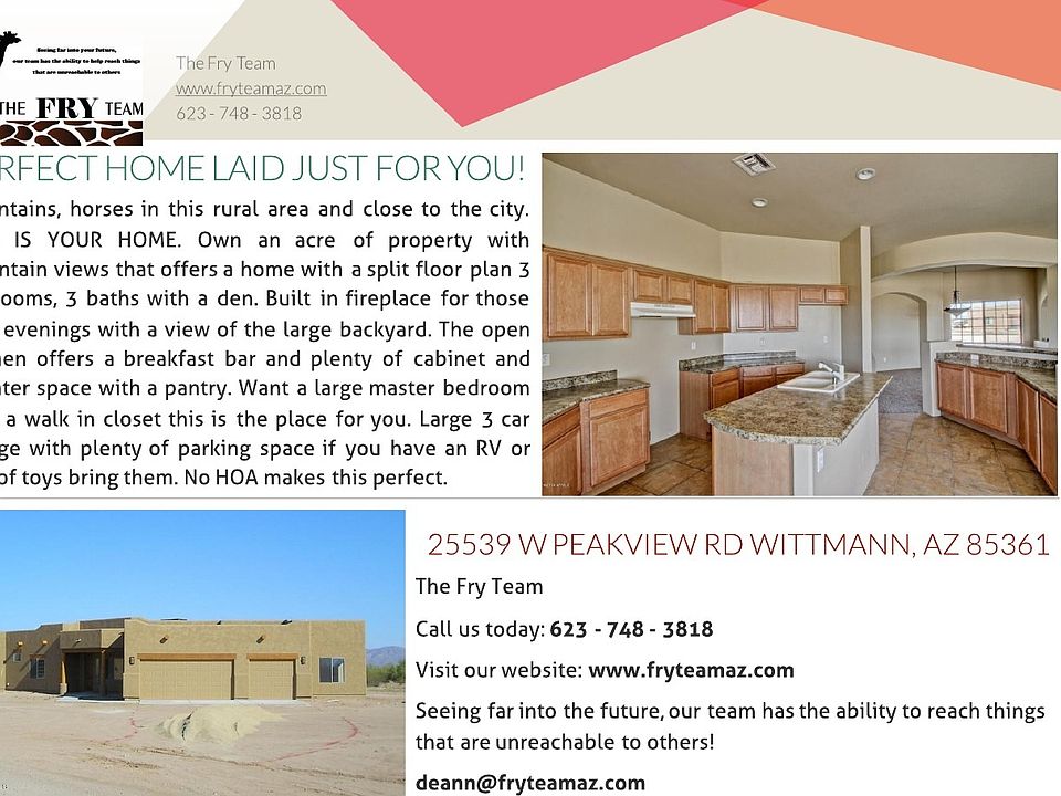 CONTACT THE OFFICIAL LISTING: Deann Fry at 623-748-3818 for more information about this property or visit us at www.fryteamaz.com.Mountains, horses in this rural area and close to the city. THIS IS YOUR HOME. Own an acre of property with mountain views that offers a home with a split floor plan 3 bedrooms, 3 baths with a den. Built in fireplace for those cool evenings with a view of the large backyard. The open kitchen offers a breakfast bar and plenty of cabinet and counter space with a pantry. Want a large master bedroom with a walk in closet this is the place for you.Large 3 car garage with plenty of parking space if you have an RV or lots of toys bring them. No HOA makes this perfect.